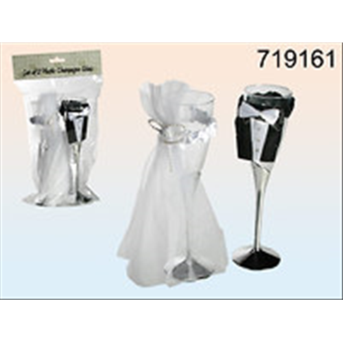 BICCHIERE DA CHAMPAGNE IN PLAST. C/TULLE SPOSA/SPOSO 22CM