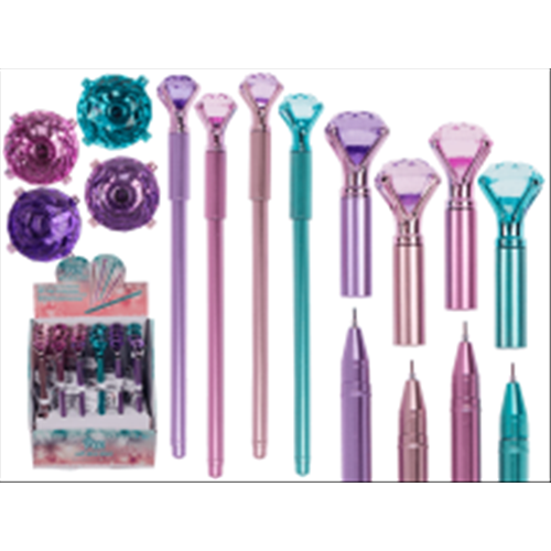 PENNA A SFERA METALLIC FINISH C/PIETRE DECORATIVE 4 COL.
