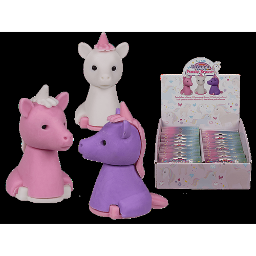 PUZZLE GOMMA DA CANCELLARE UNICORNO 4X2 CM 3 COL. ASS.