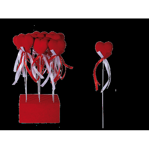 SPILLA IN PLASTICA, CUORE ROSSO RIVESTITO IN VELLUTO 4.5X23 CM